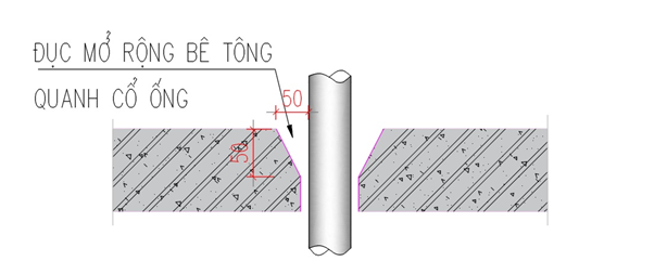 - Các cổ ống sau khi được bàn giao mặt bằng tiến hành công tác đục tẩy hình chữ U/V mở rộng xung quanh cổ ống ~50-70mm, sâu từ ~50-70mm.